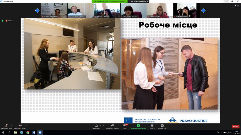Проєкт ЄС "Право-Justice", який впроваджується за фінансової підтримки Європейського Союзу, спрямований на консолідацію загальноєвропейських реформ у сфері юстиції. В межах Проєкту ЄС "Право-Justice" з 2018 року реалізовується Ініціатива "Модельні суди", що має на меті підвищення ефективності правосуддя, якості обслуговування клієнтів, покращення комунікації, підвищення безпеки та підтримку вразливих людей в українських судах.