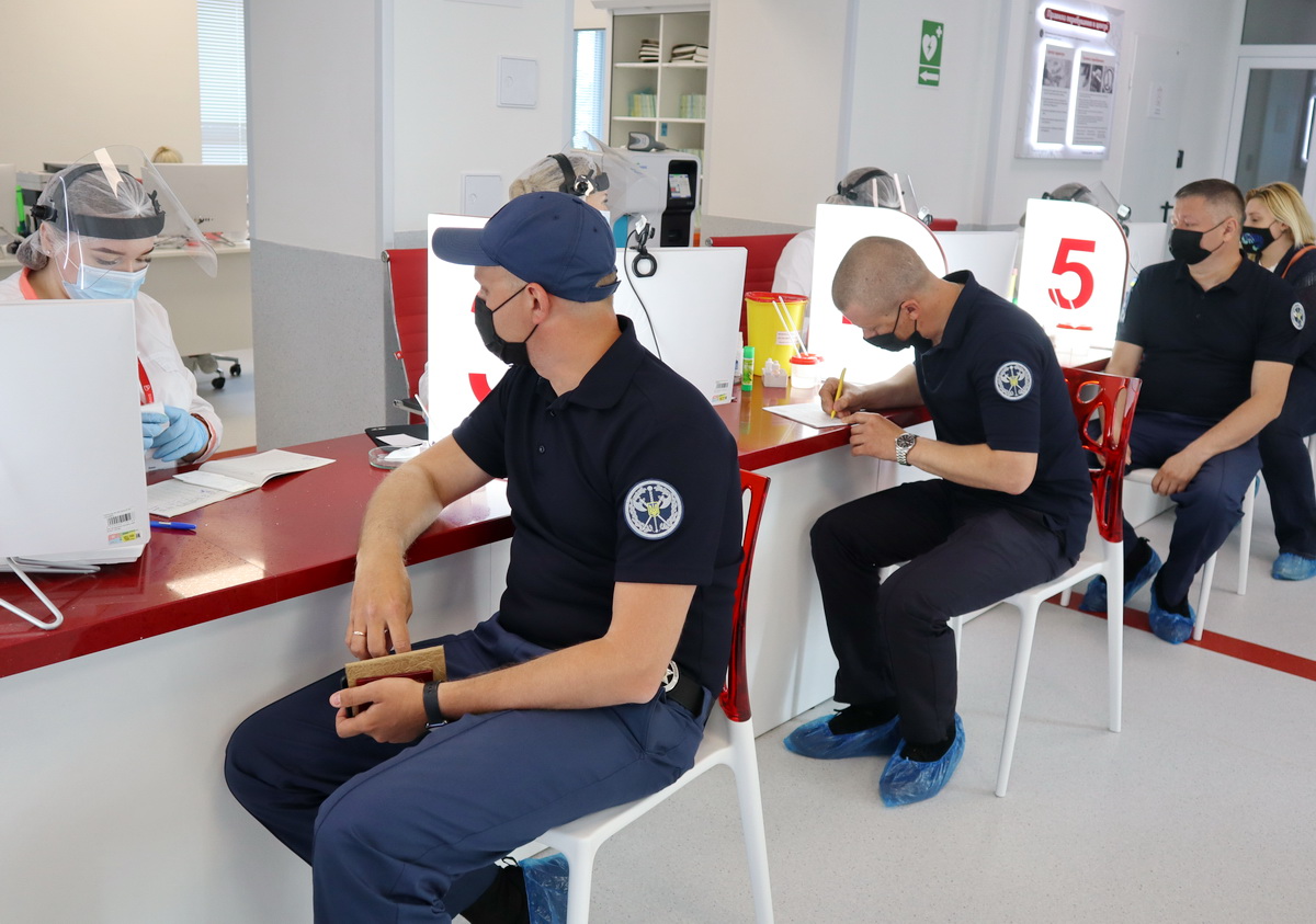 Судові охоронці Рівненщини на чолі із заступником начальника Територіального управління Служби у Рівненській області полковником Служби судової охорони Андрієм Семківим 1 червня завітали до Рівненського обласного центру служби крові і здали кров на потреби дитячих лікарень.