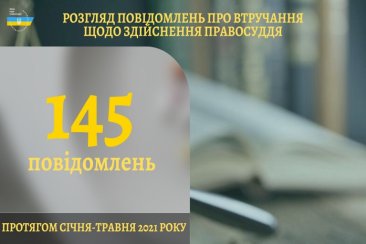 За аналогічний період 2020 року до ВРП надійшло 151 повідомлення про втручання у професійну діяльність суддів щодо здійснення правосуддя та дії, що порушують гарантії незалежності суддів або підривають авторитет правосуддя. Розглянуто 144 повідомлення (з урахуванням повідомлень, які надійшли в попередні періоди).