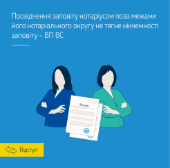 Разом із тим Велика Палата ВС зауважила, що вчинення нотаріусом нотаріальних дій поза межами його нотаріального округу може бути підставою для притягнення його до передбаченої законом відповідальності, але не тягне нікчемності заповіту, посвідченого з таким порушенням.