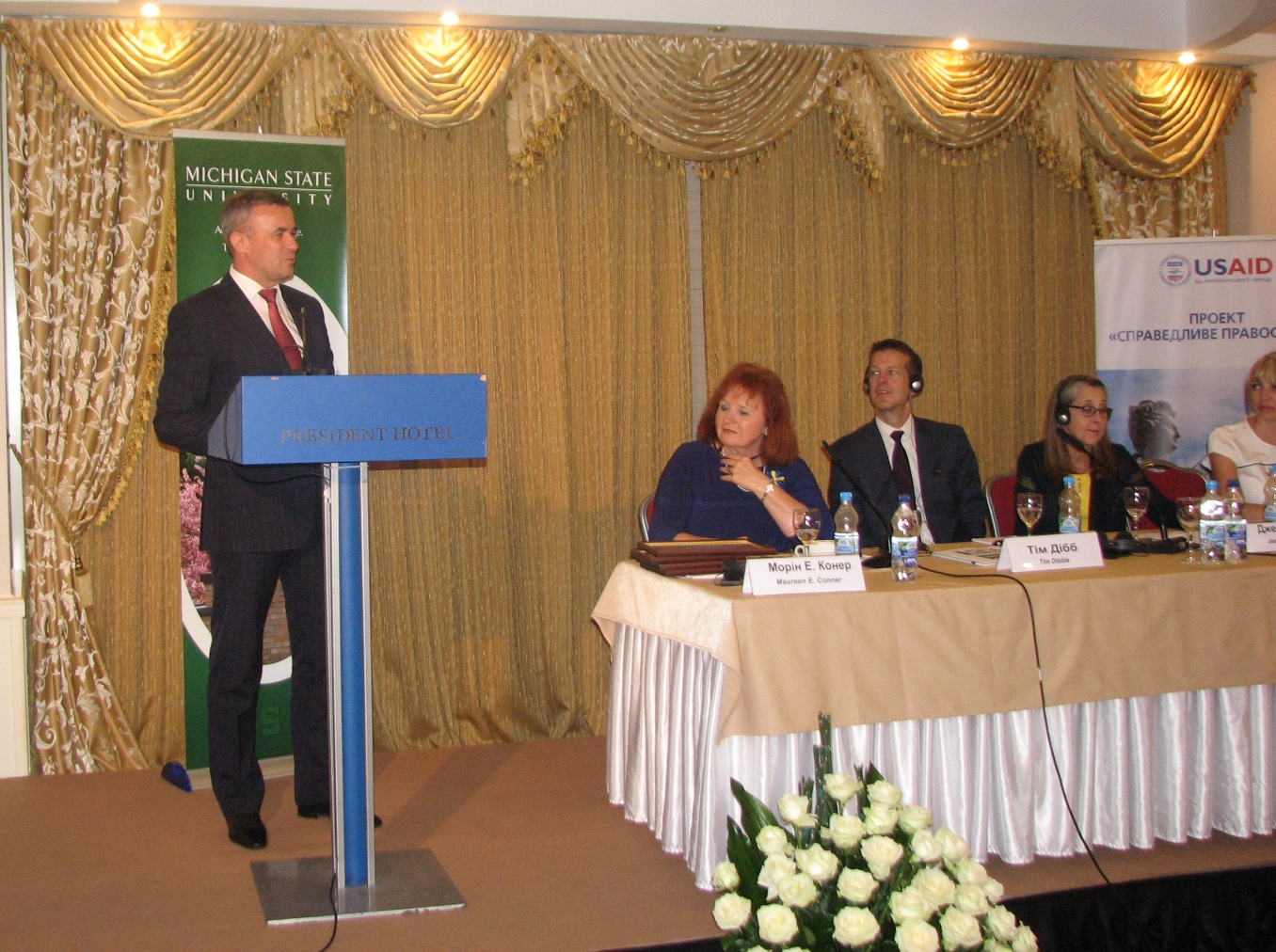 За сприяння розвитку професіоналізму судових адміністраторів та впровадженню міжнародних стандартів діяльності судів в Україні по завершенню урочистостей з нагоди вручення сертифікатів навчальної програми з питань судового адміністрування Зеновій Холоднюк вручив Подяки ДСА України керівнику Проекту "Справедливе правосуддя" Девіду Вону та викладачам Університету штату Мічиган.