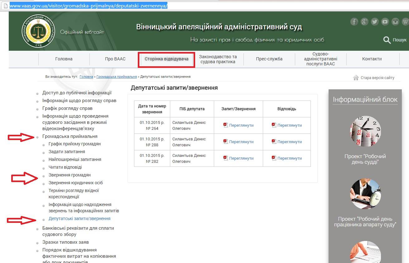 Вінницький апеляційний адміністративний суд інформує усіх про депутатські запити/звернення, а також звернення, які надходять до суду від фізичних осіб, юридичних осіб та суб’єктів владних повноважень.