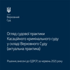 Пропонуємо до вашої уваги огляд судової практики, у якому зібрано найактуальніші правові позиції з проблем кримінального та кримінального процесуального права, що містяться в постановах, ухвалених Касаційним кримінальним судом у складі Верховного Суду у червні 2021 року.