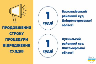 Вища рада правосуддя відповідно до рішень від 9 вересня 2021 року № 1972/0/15-21 та № 1973/0/15-21 продовжила строк надання суддями згоди на відрядження до Васильківського районного суду Дніпропетровської області – до 19 вересня 2021 року та Лугинського районного суду Житомирської області – до 20 вересня 2021 року.