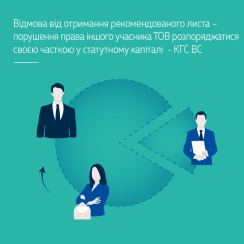 КГС ВС зробив висновок, що норми частин 1 та 3 ст. 20 Закону України «Про товариства з обмеженою та додатковою відповідальністю» щодо дати отримання повідомлення про намір учасника продати частку в спірних правовідносинах треба застосовувати таким чином: у разі відмови учасника товариства від отримання надісланого поштою повідомлення іншого учасника про намір продати свою частку третій особі, що підтверджується відміткою в поштовому повідомленні, і нездійснення ним заяви про намір скористатися своїм переважним правом протягом 30 днів з дати відмови, на 31-ий день така частка може бути відчужена третій особі на раніше повідомлених умовах. У такому разі учасник товариства не має права вимагати в судовому порядку переведення на себе прав і обов’язків покупця частки.