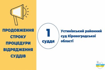 1 судді до Устинівського районного суду Кіровоградської області.