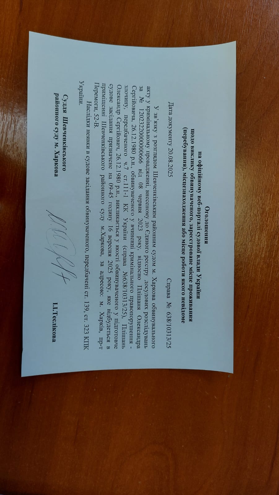 Увага, суд перейменовано з Дзержинський районний суд м. Харкова