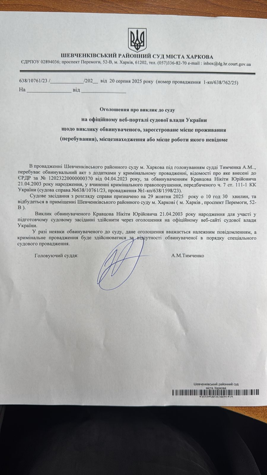 Увага, суд перейменовано з Дзержинський районний суд м. Харкова