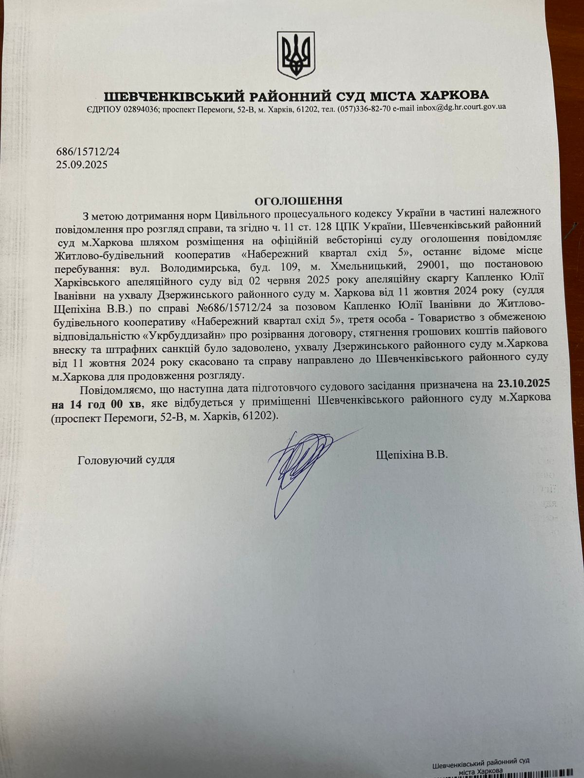 Повідомлення для Житлово-будівельний кооператив "Набережний квартал"