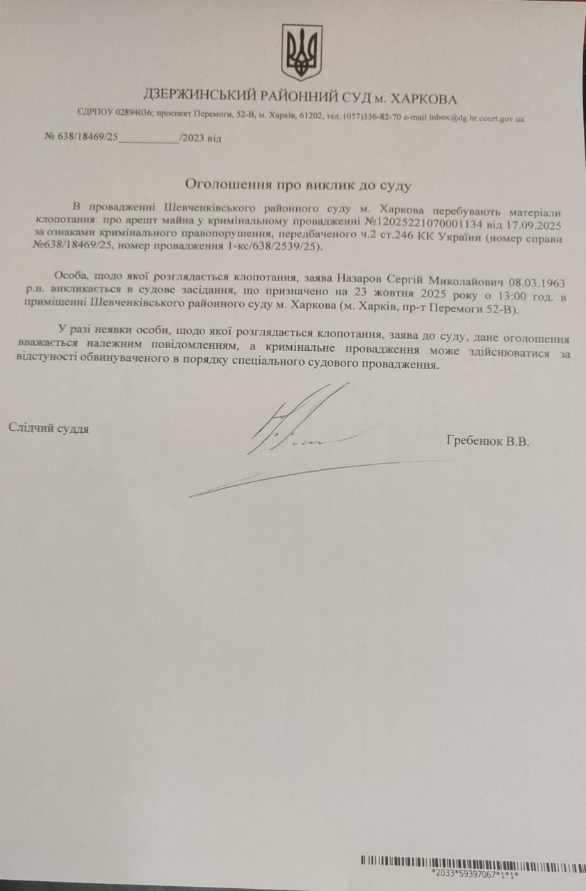 Увага, суд перейменовано з Дзержинський районний суд м. Харкова