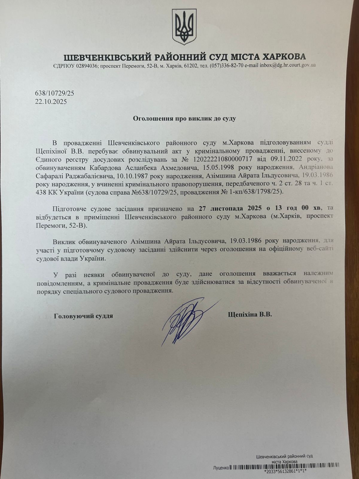 Викликається Андріанов С.Р., Кабардова А.А., Андріанов С.Ф.
