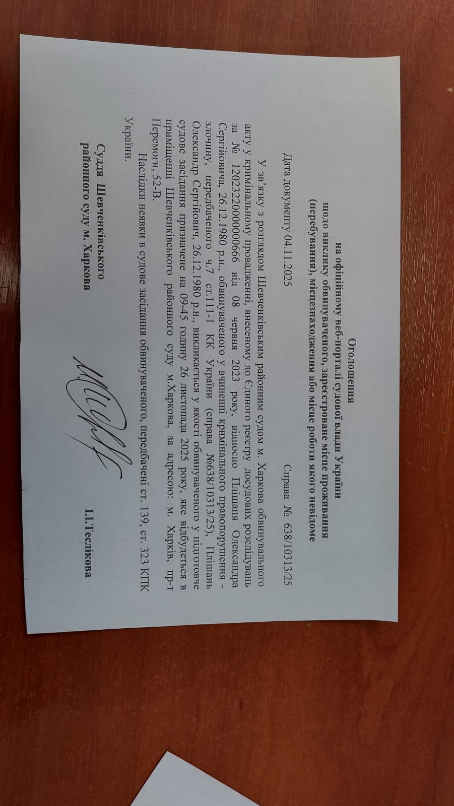 Оголошення про виклик особи в суд та повідомлення про судове рішення
