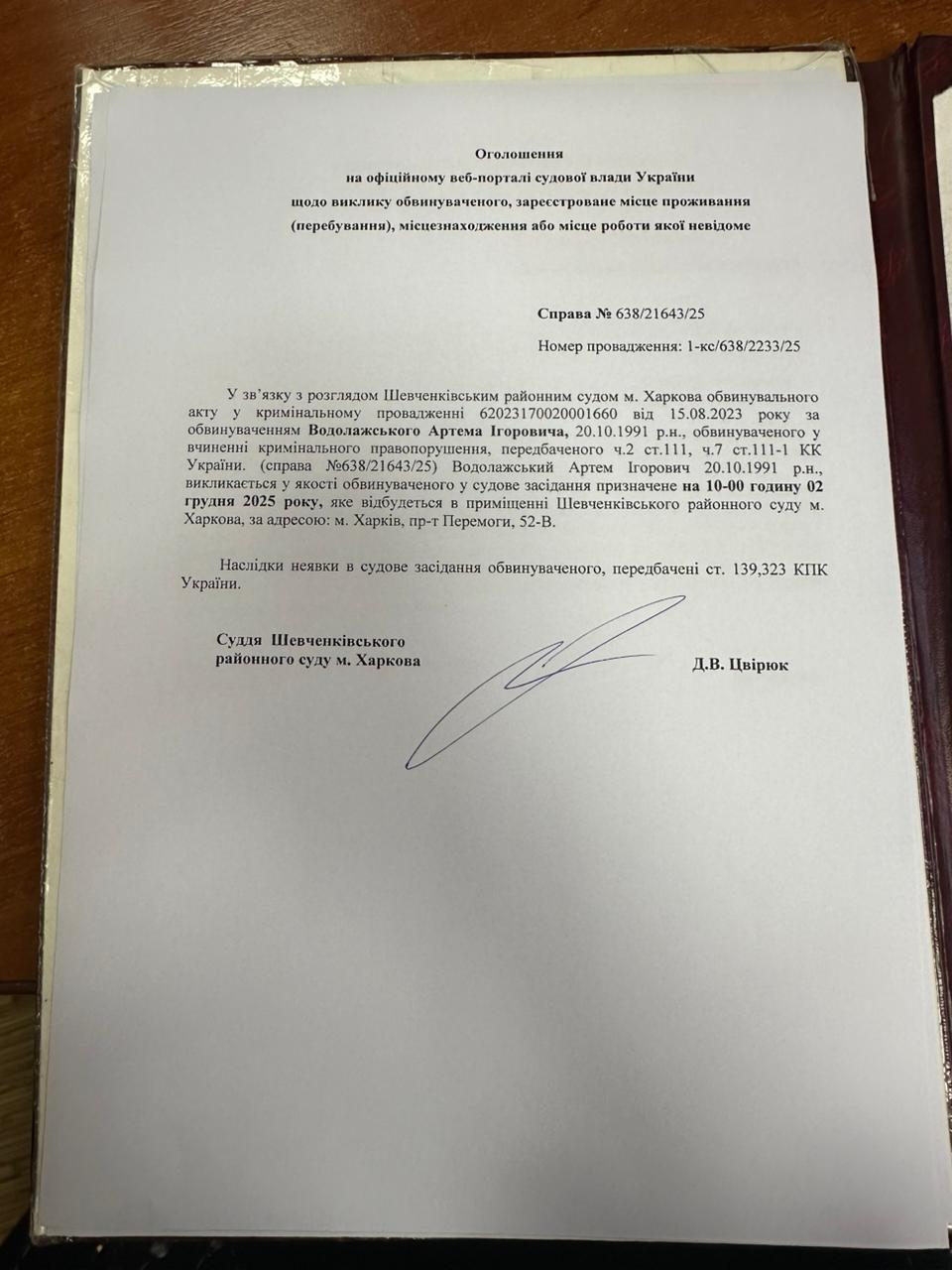Оголошення про виклик особи в суд та повідомлення про судове рішення