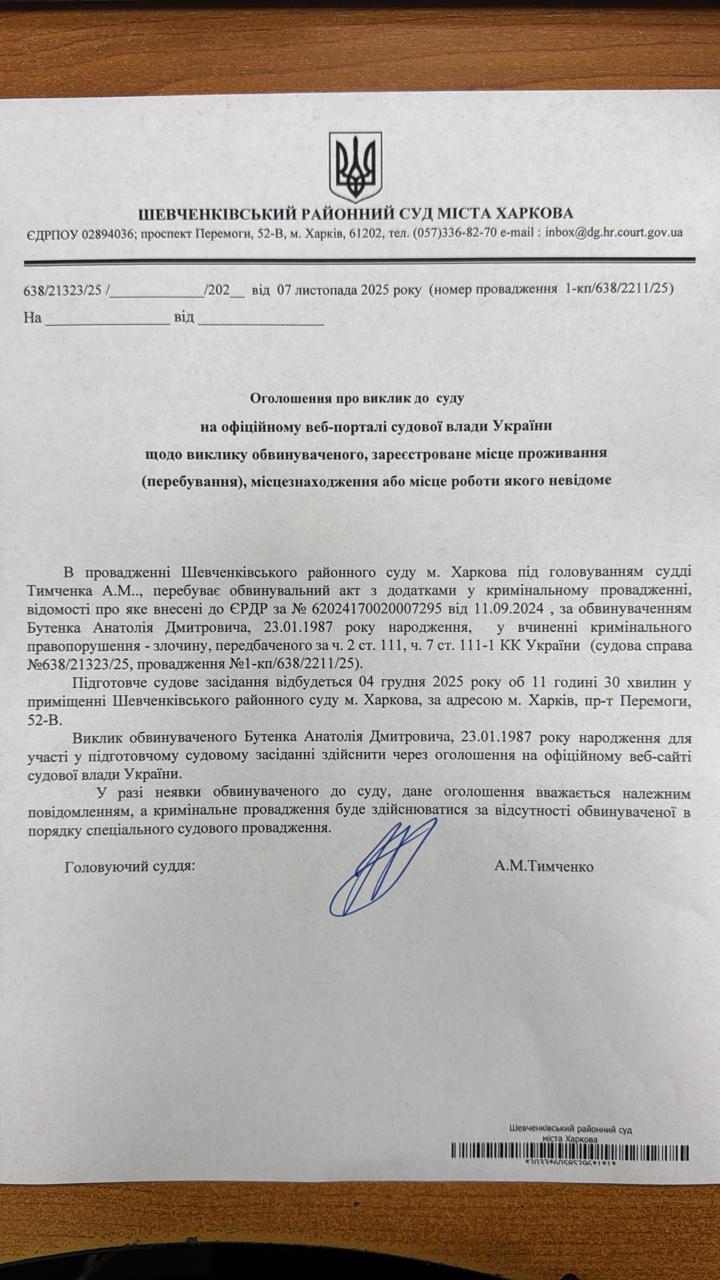 Оголошення про виклик особи в суд та повідомлення про судове рішення