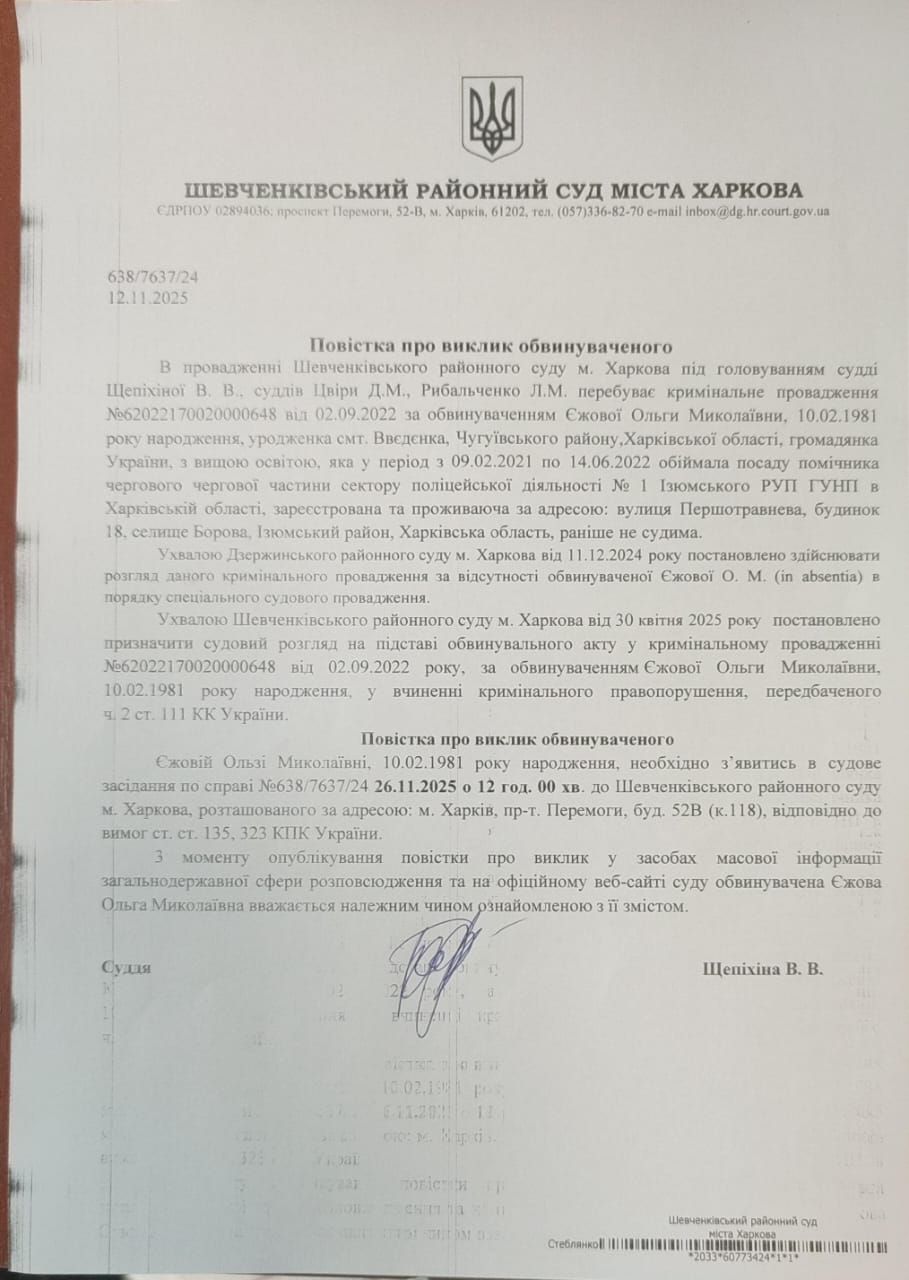 Оголошення про виклик особи в суд та повідомлення про судове рішення