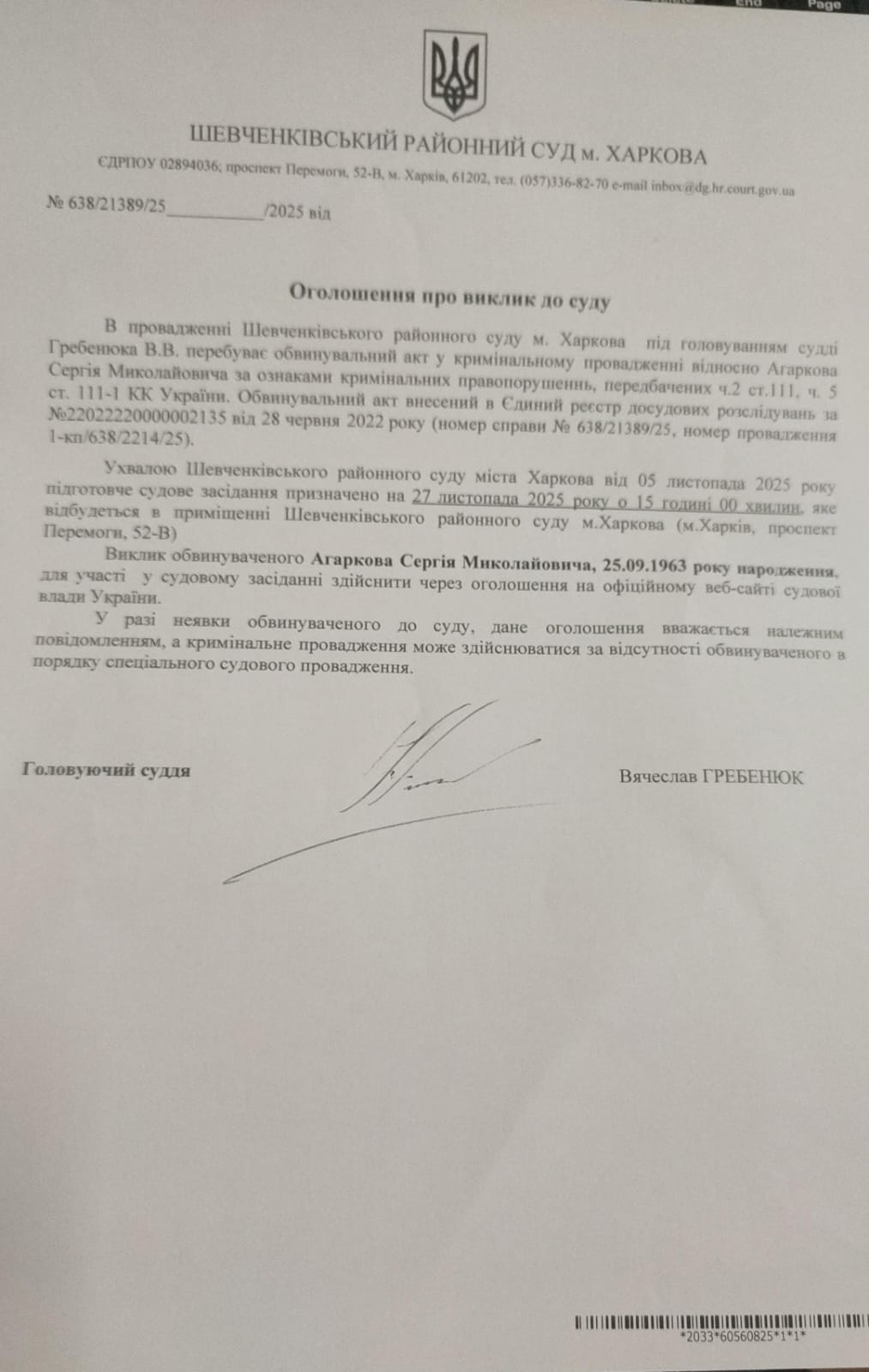 Оголошення про виклик особи в суд та повідомлення про судове рішення