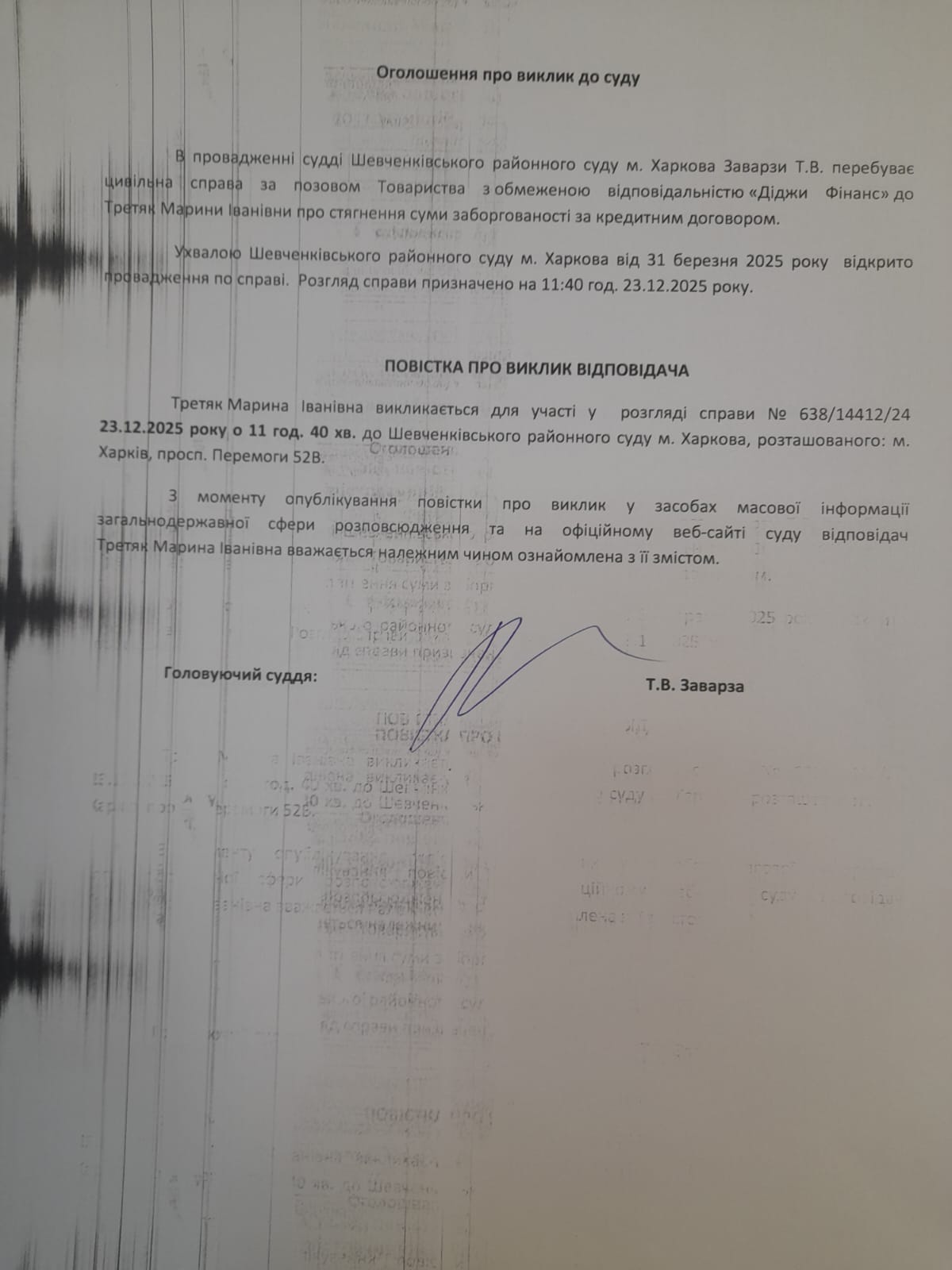 Оголошення про виклик особи в суд та повідомлення про судове рішення