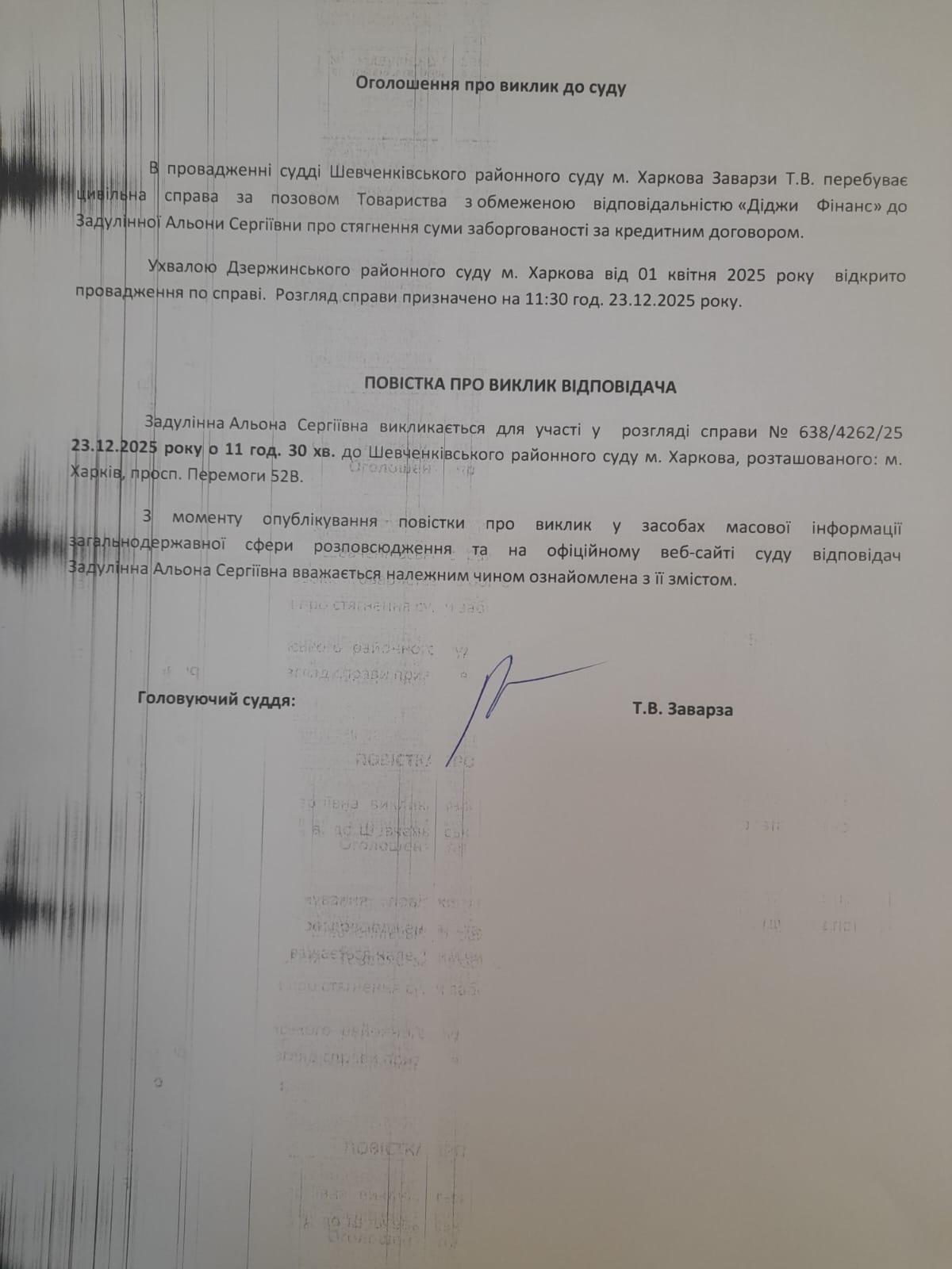 Оголошення про виклик особи в суд та повідомлення про судове рішення