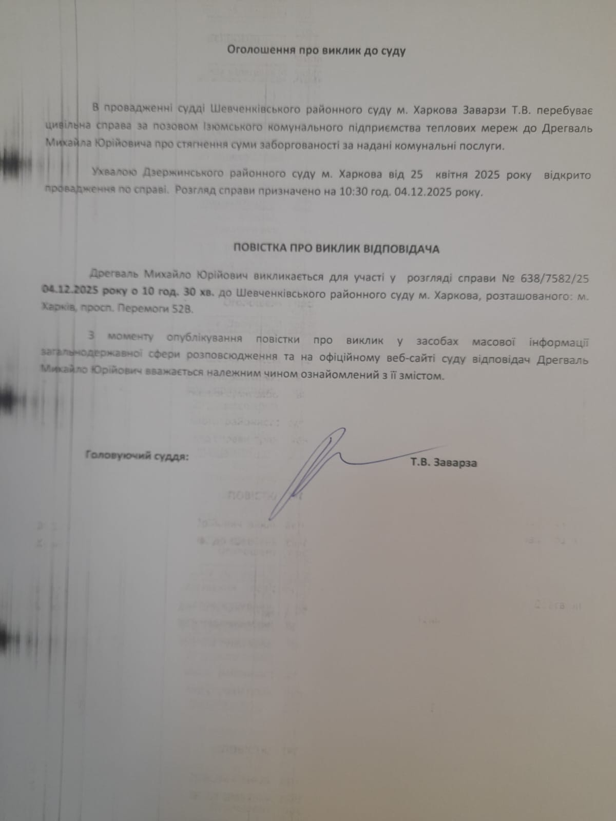 Оголошення про виклик особи в суд та повідомлення про судове рішення
