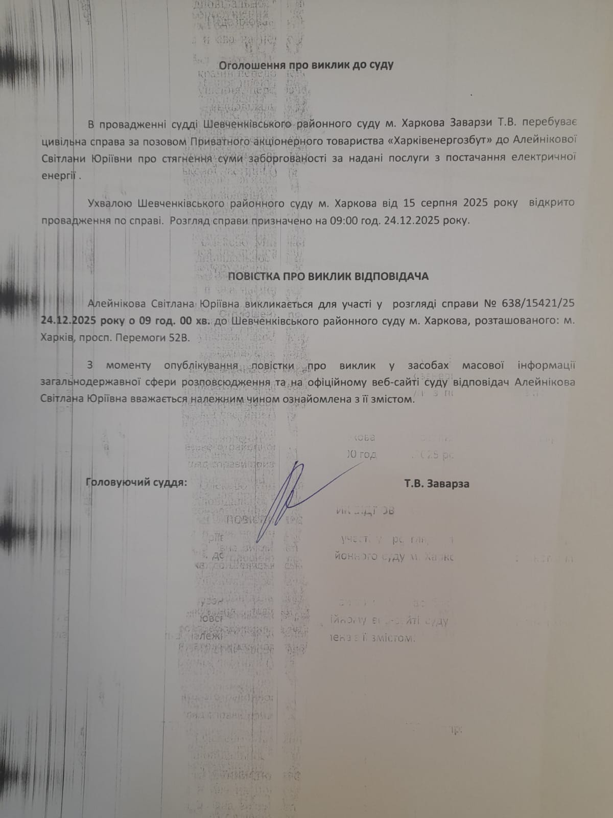 Оголошення про виклик особи в суд та повідомлення про судове рішення