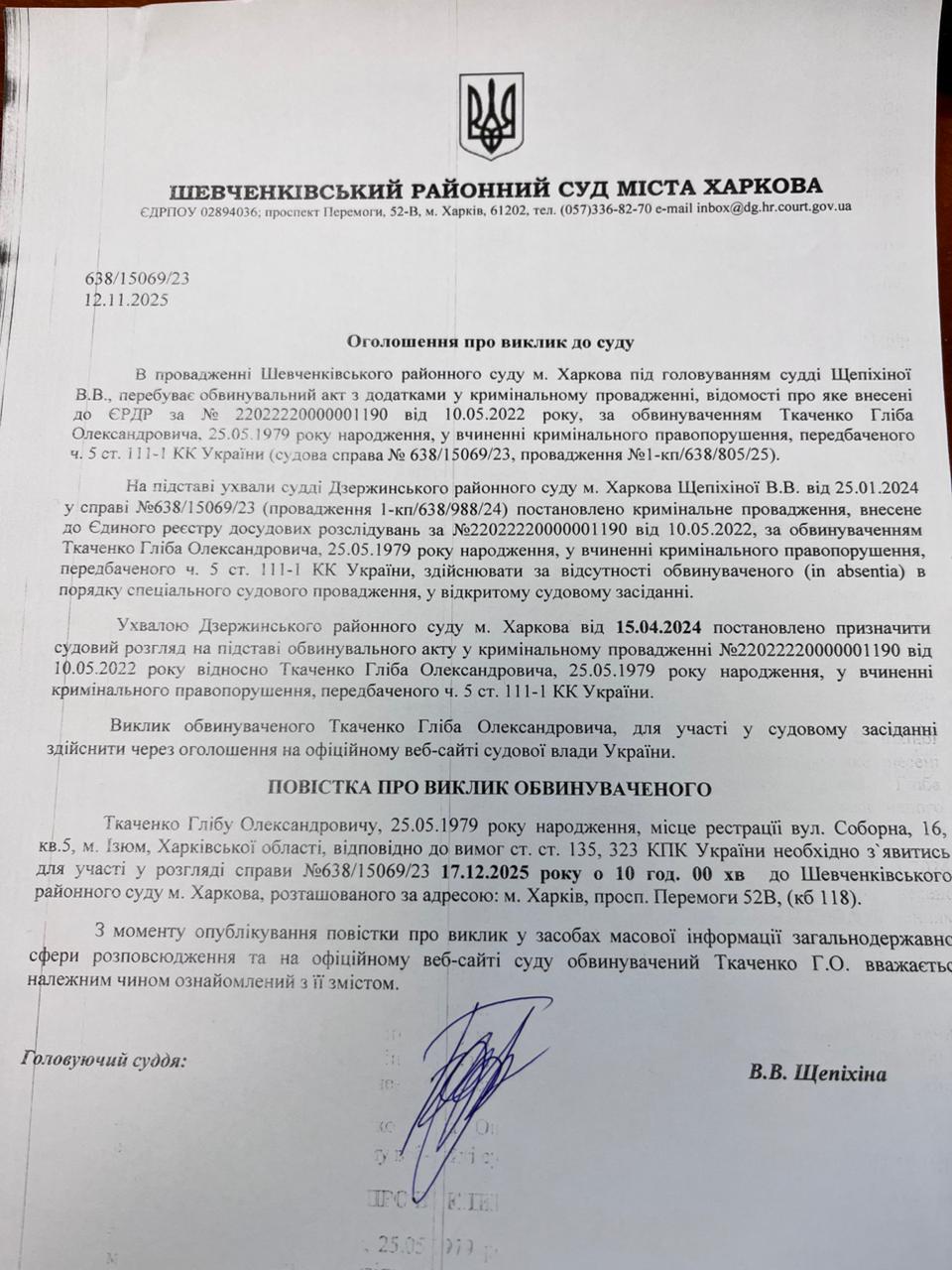 Оголошення про виклик особи в суд та повідомлення про судове рішення