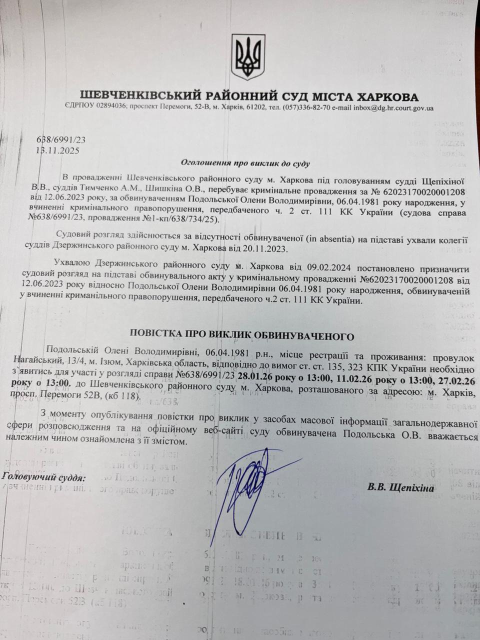 Оголошення про виклик особи в суд та повідомлення про судове рішення