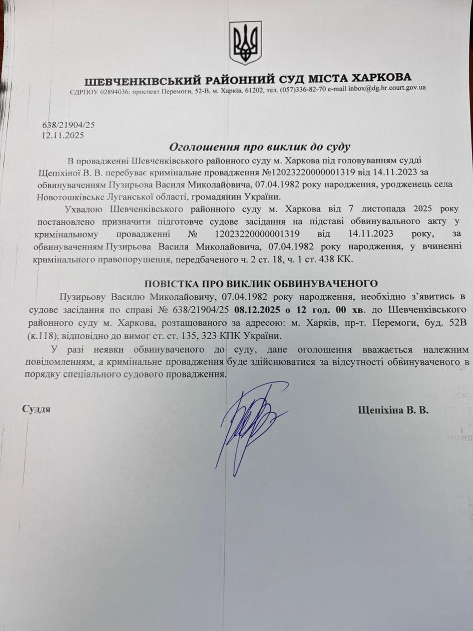 Оголошення про виклик особи в суд та повідомлення про судове рішення