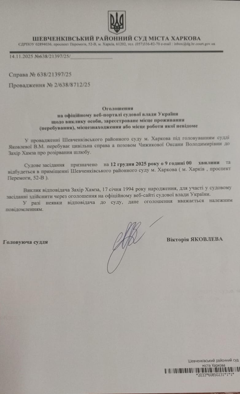 Оголошення про виклик особи в суд та повідомлення про судове рішення