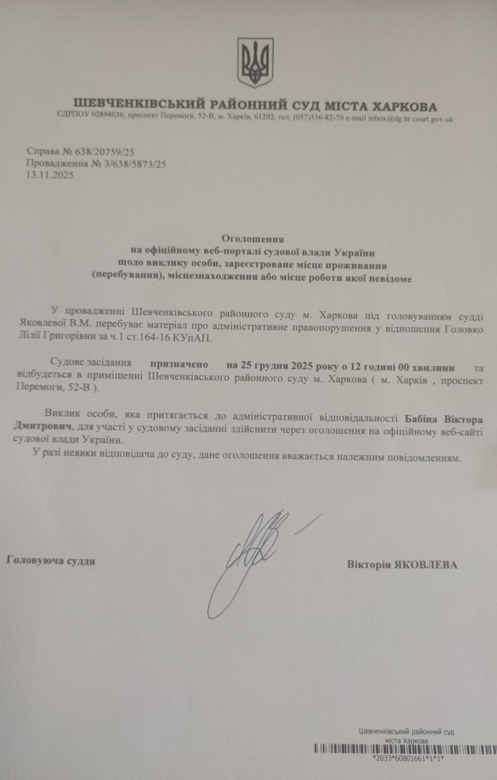 Оголошення про виклик особи в суд та повідомлення про судове рішення