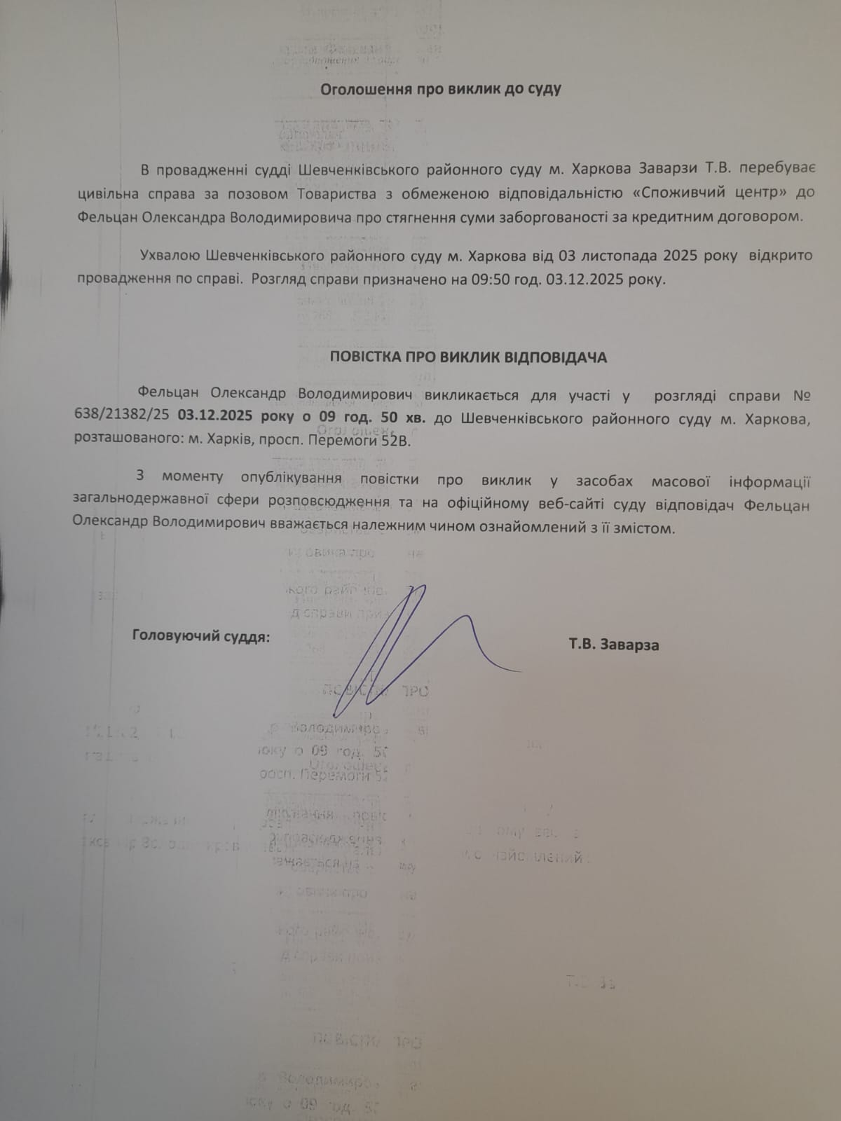 Оголошення про виклик особи в суд та повідомлення про судове рішення
