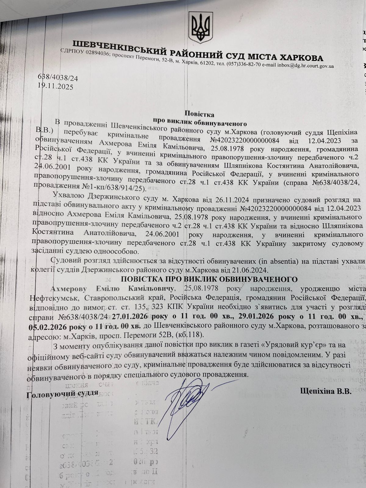 Оголошення про виклик особи в суд та повідомлення про судове рішення