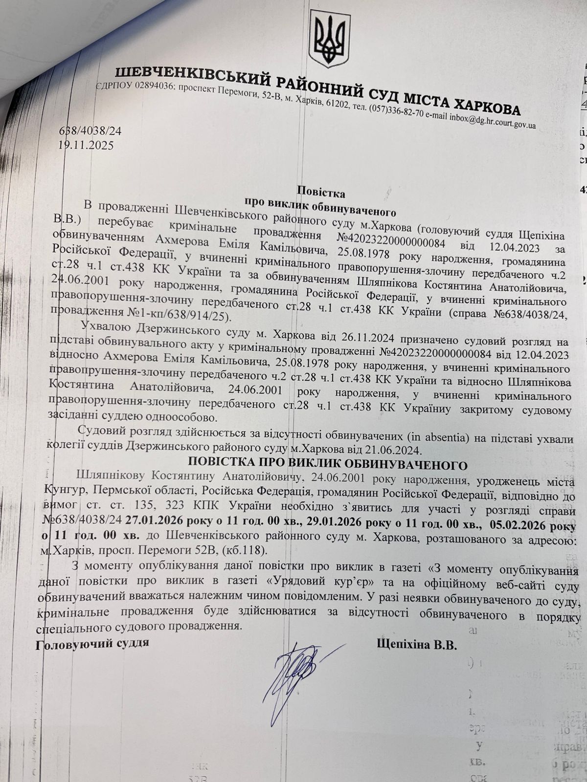 Оголошення про виклик особи в суд та повідомлення про судове рішення