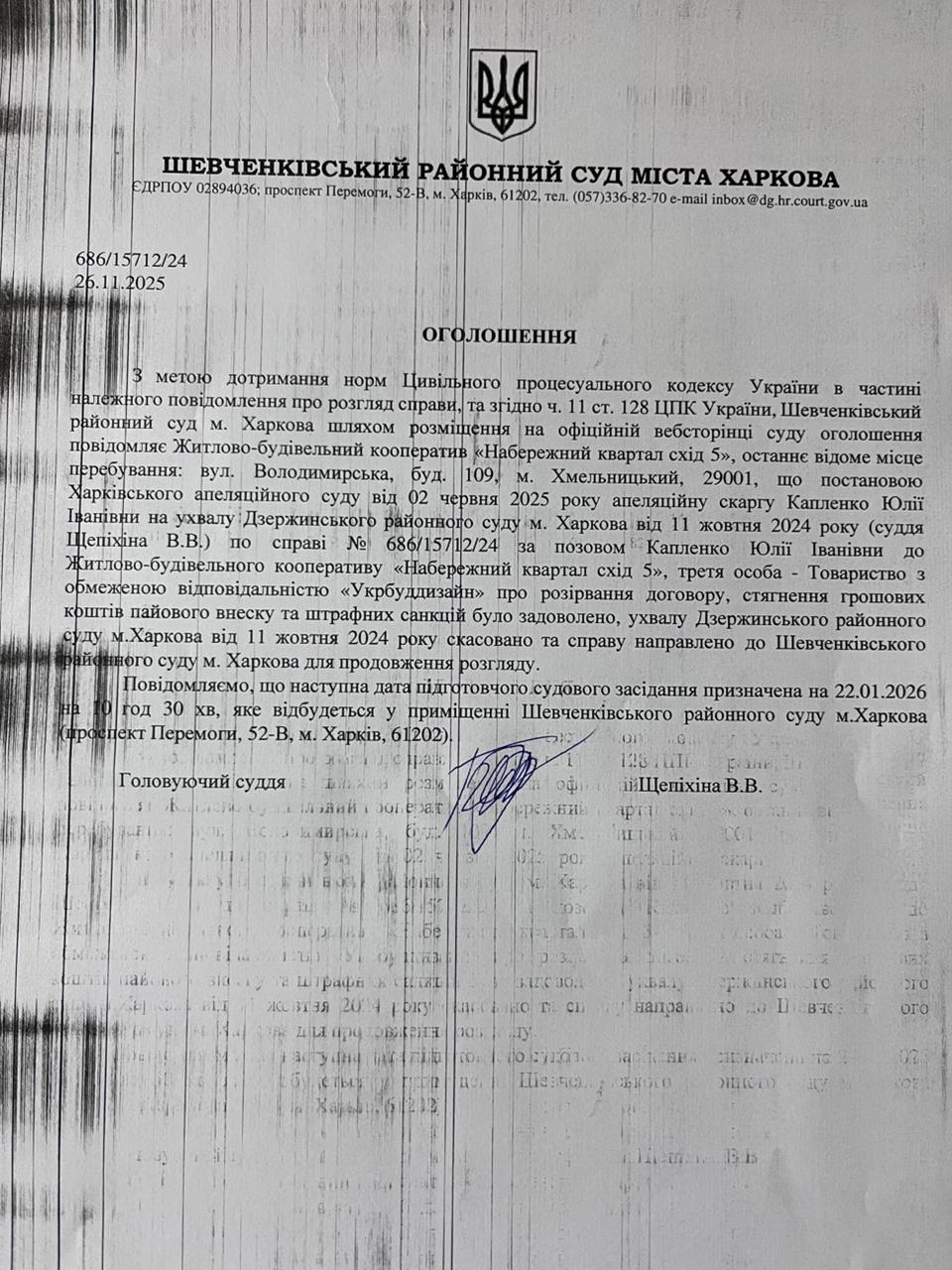 Прес-служба Шевченківського районного суду м. Харкова