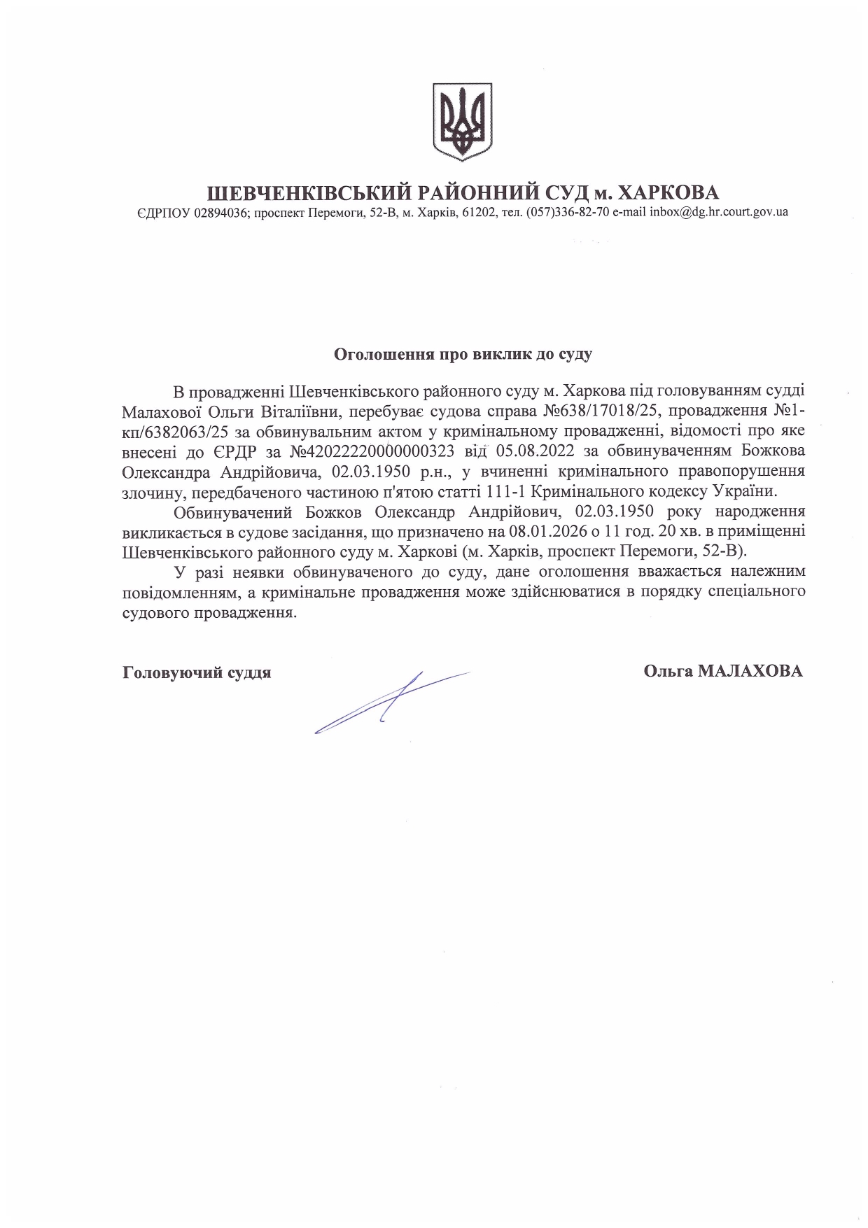 Прес-служба Шевченківського районного суду м. Харкова