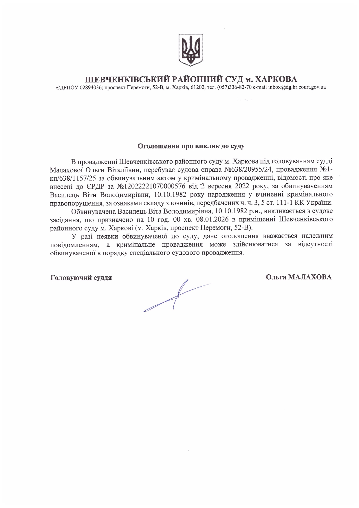 Оголошення про виклик особи в суд та повідомлення про судове рішення