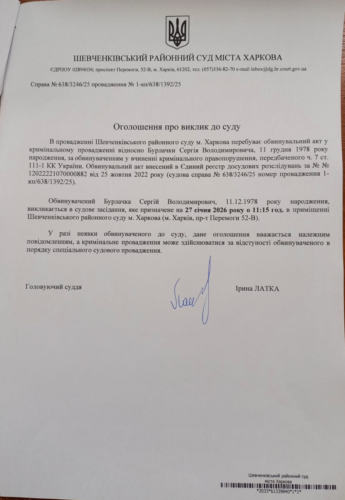 Оголошення про виклик особи в суд та повідомлення про судове рішення