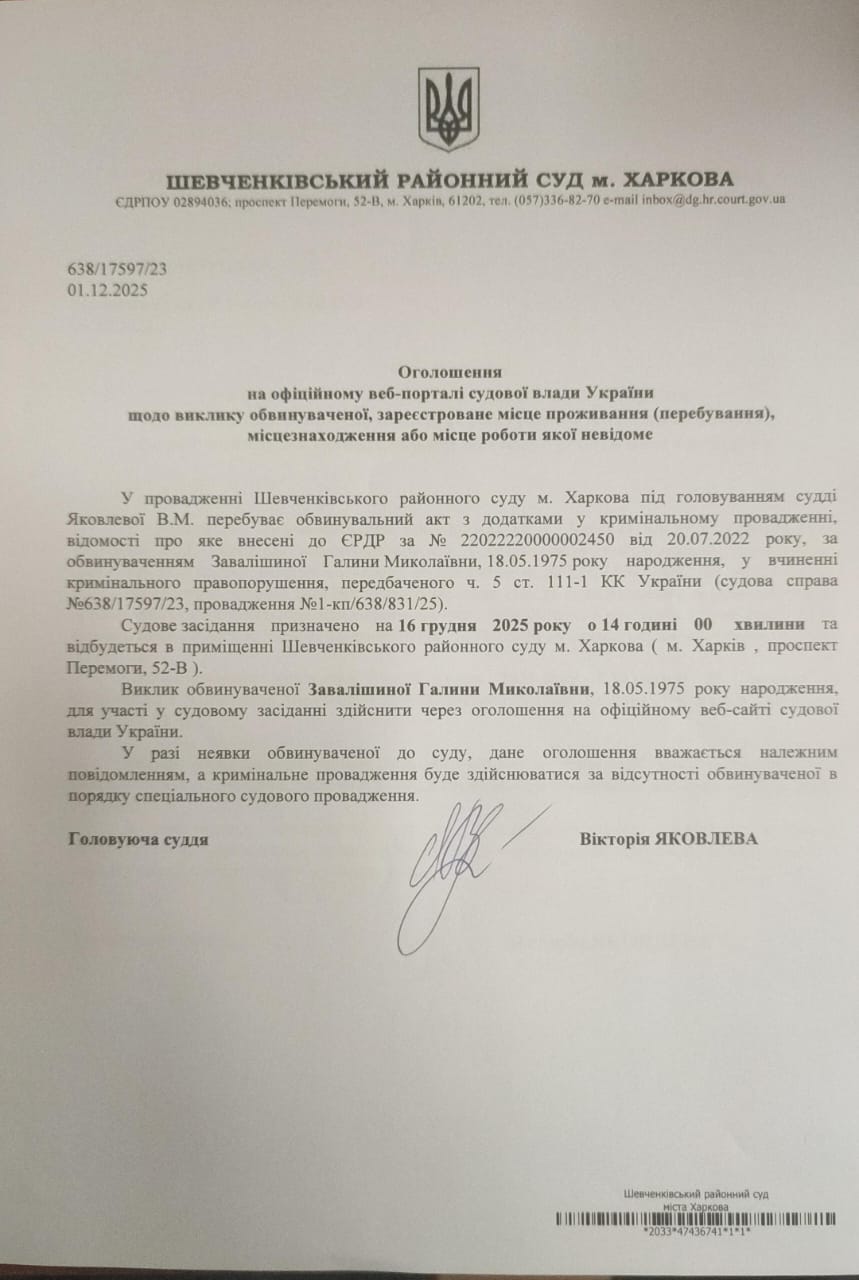 Прес-служба Шевченківського районного суду м. Харкова