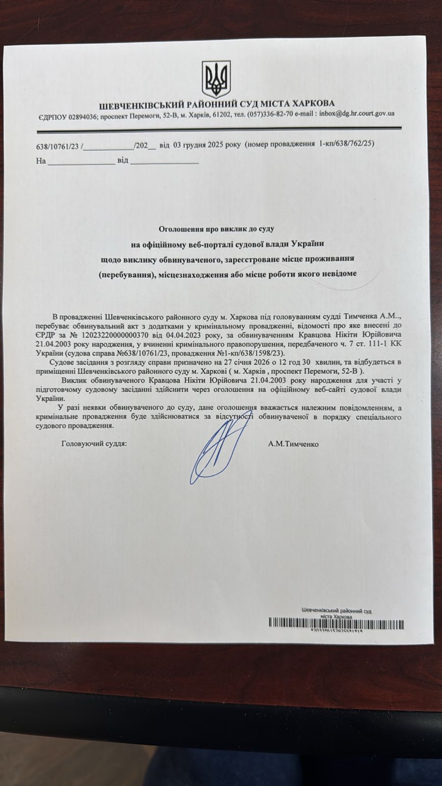 Оголошення про виклик особи в суд та повідомлення про судове рішення