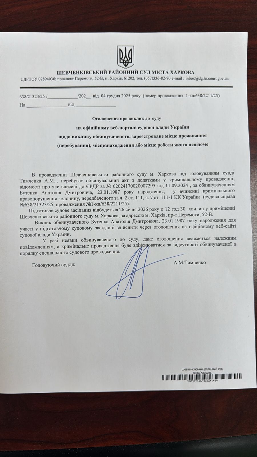 Оголошення про виклик особи в суд та повідомлення про судове рішення