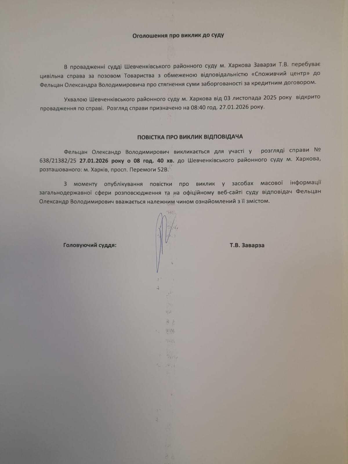 Оголошення про виклик особи в суд та повідомлення про судове рішення