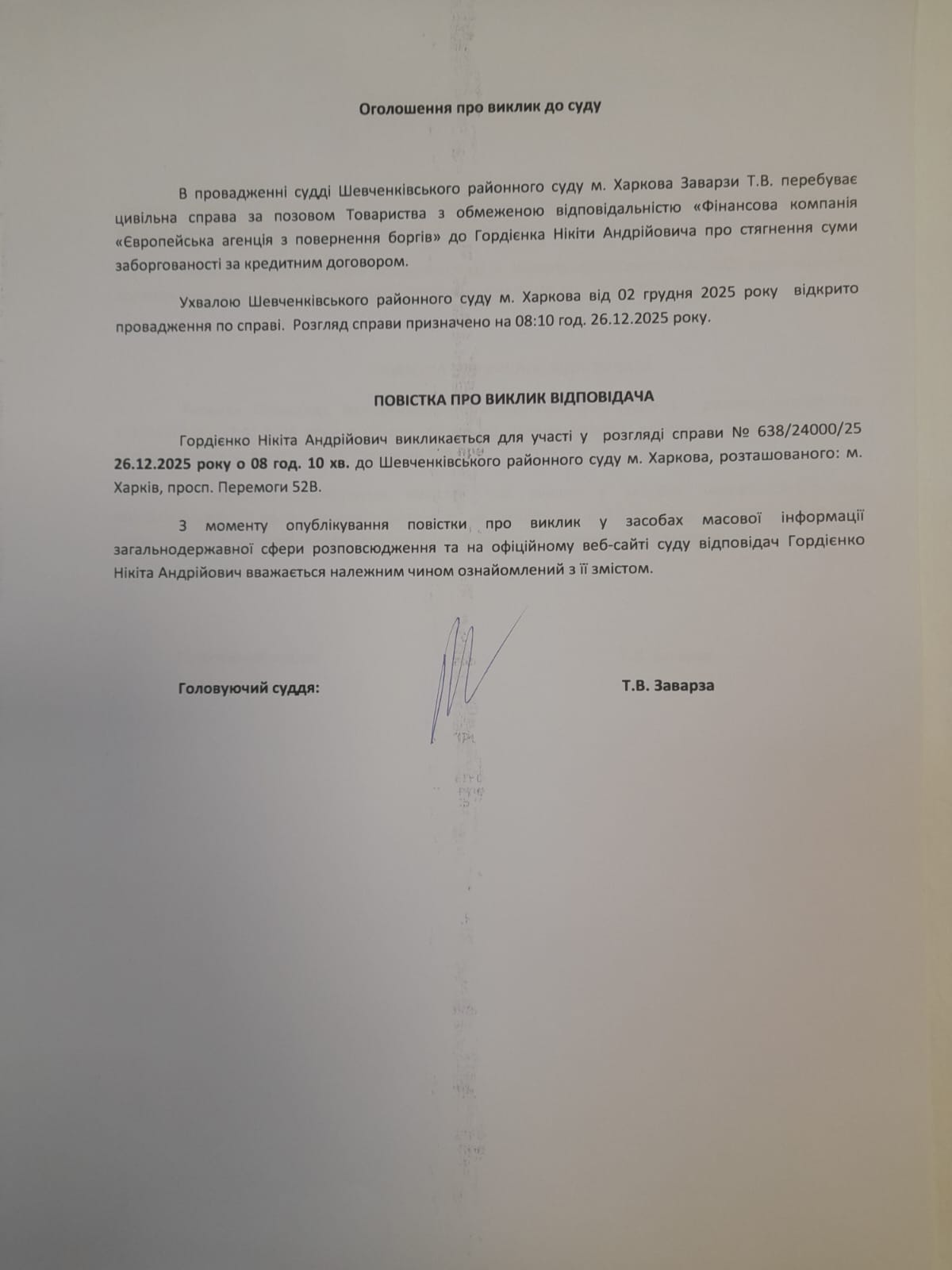 Оголошення про виклик особи в суд та повідомлення про судове рішення