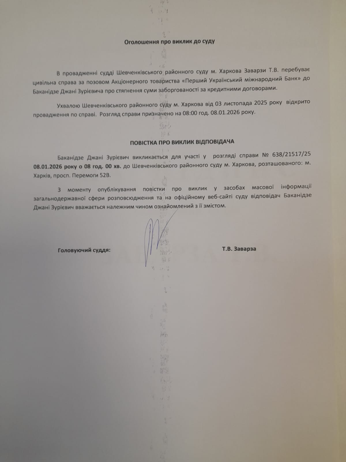 Оголошення про виклик особи в суд та повідомлення про судове рішення