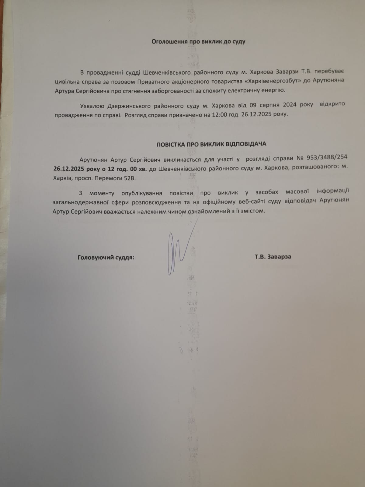 Оголошення про виклик особи в суд та повідомлення про судове рішення
