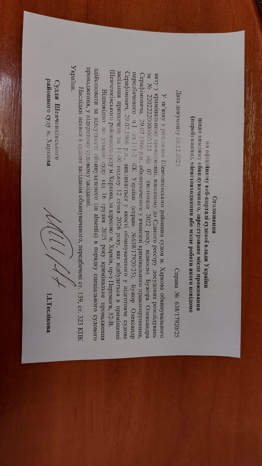 Оголошення про виклик особи в суд та повідомлення про судове рішення