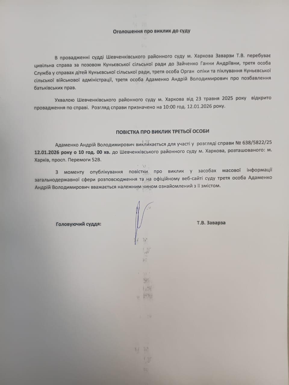 Оголошення про виклик особи в суд та повідомлення про судове рішення
