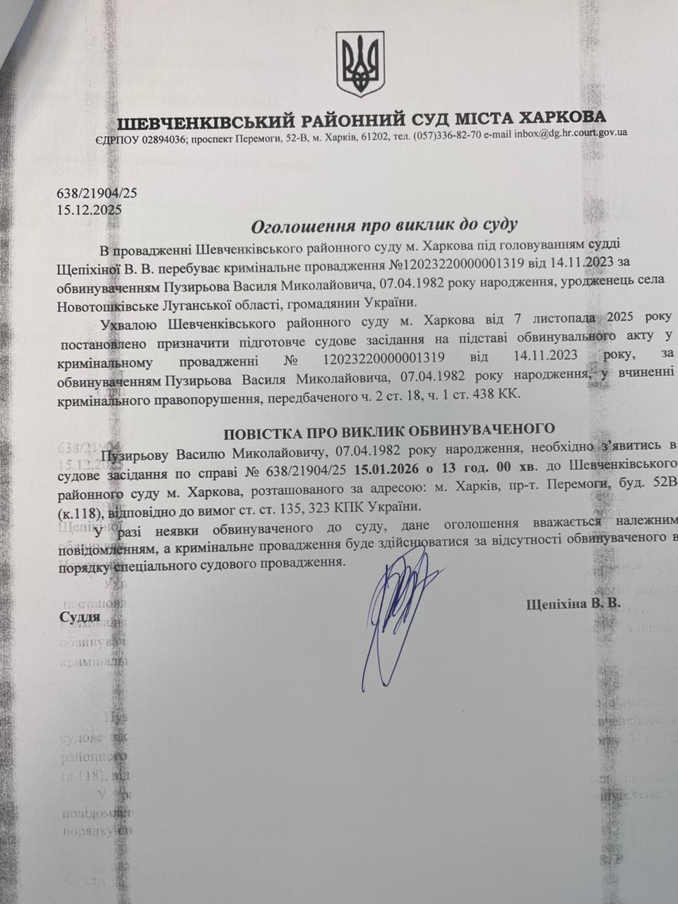 Оголошення про виклик особи в суд та повідомлення про судове рішення