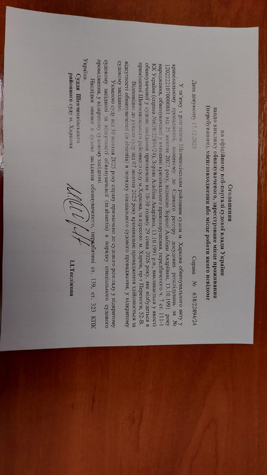 Оголошення про виклик особи в суд та повідомлення про судове рішення