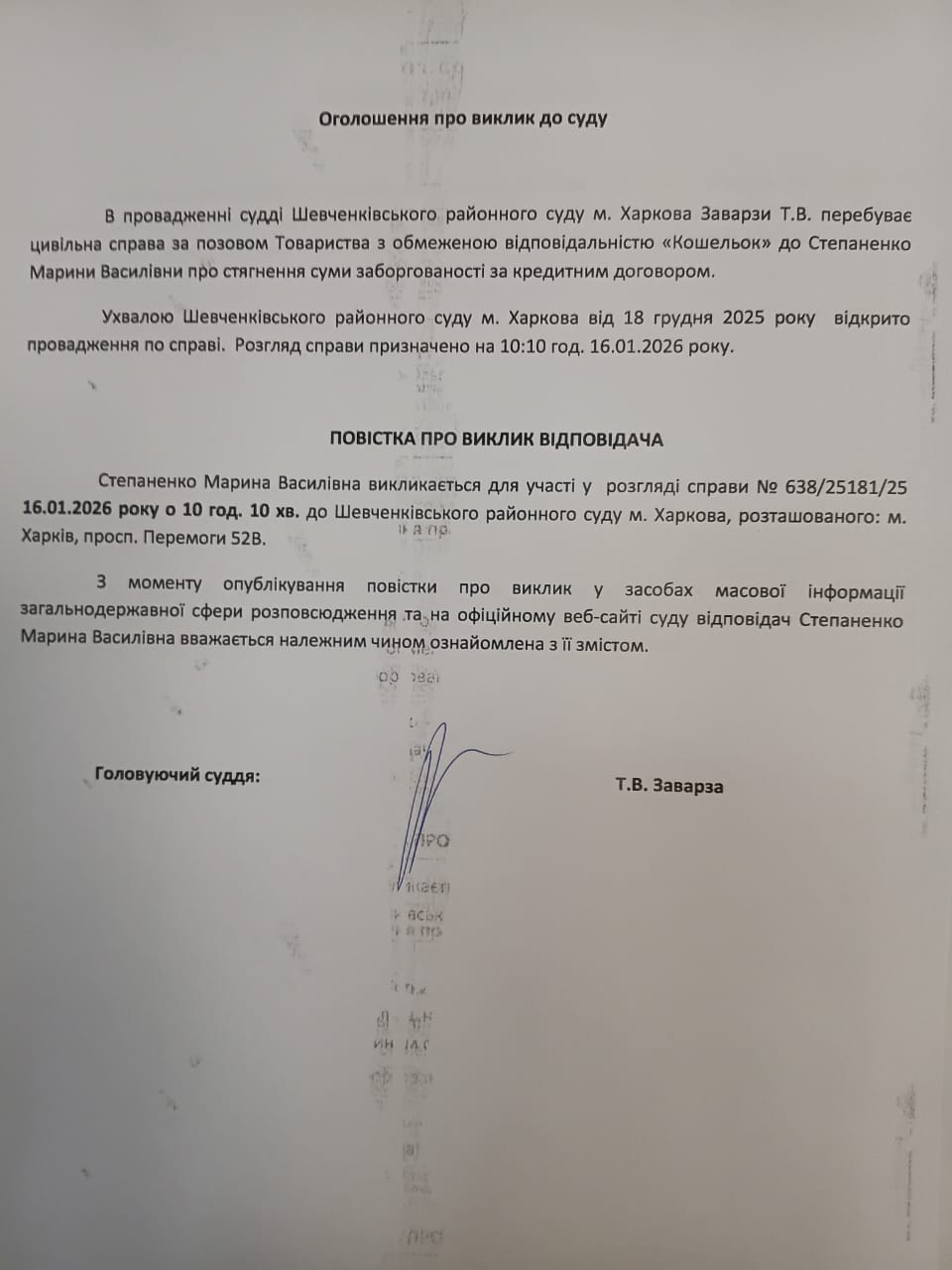 Оголошення про виклик особи в суд та повідомлення про судове рішення