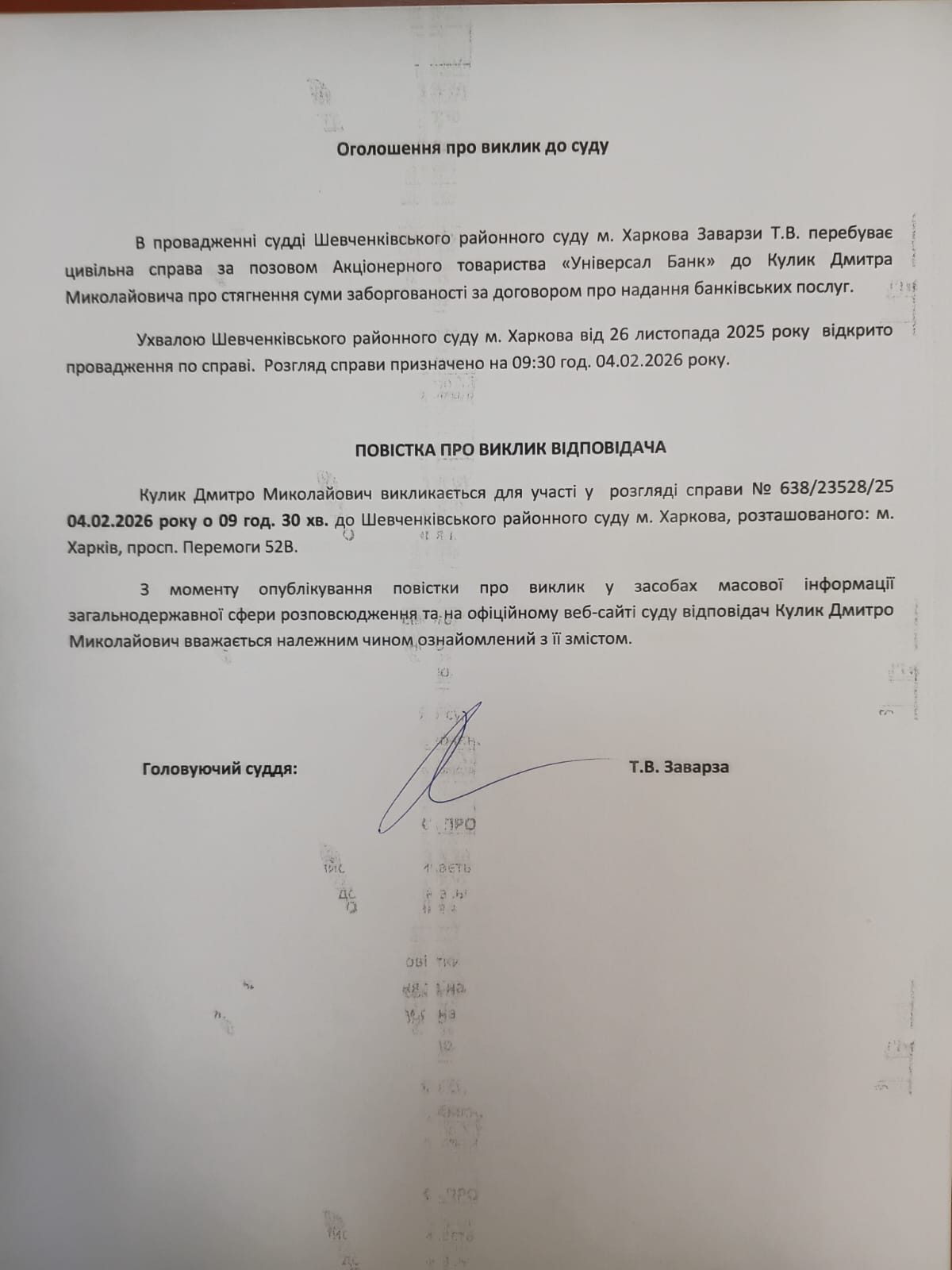 Оголошення про виклик особи в суд та повідомлення про судове рішення