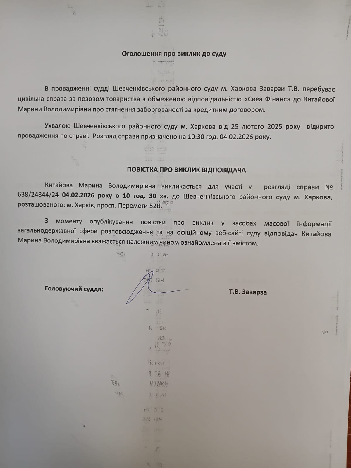 Оголошення про виклик особи в суд та повідомлення про судове рішення